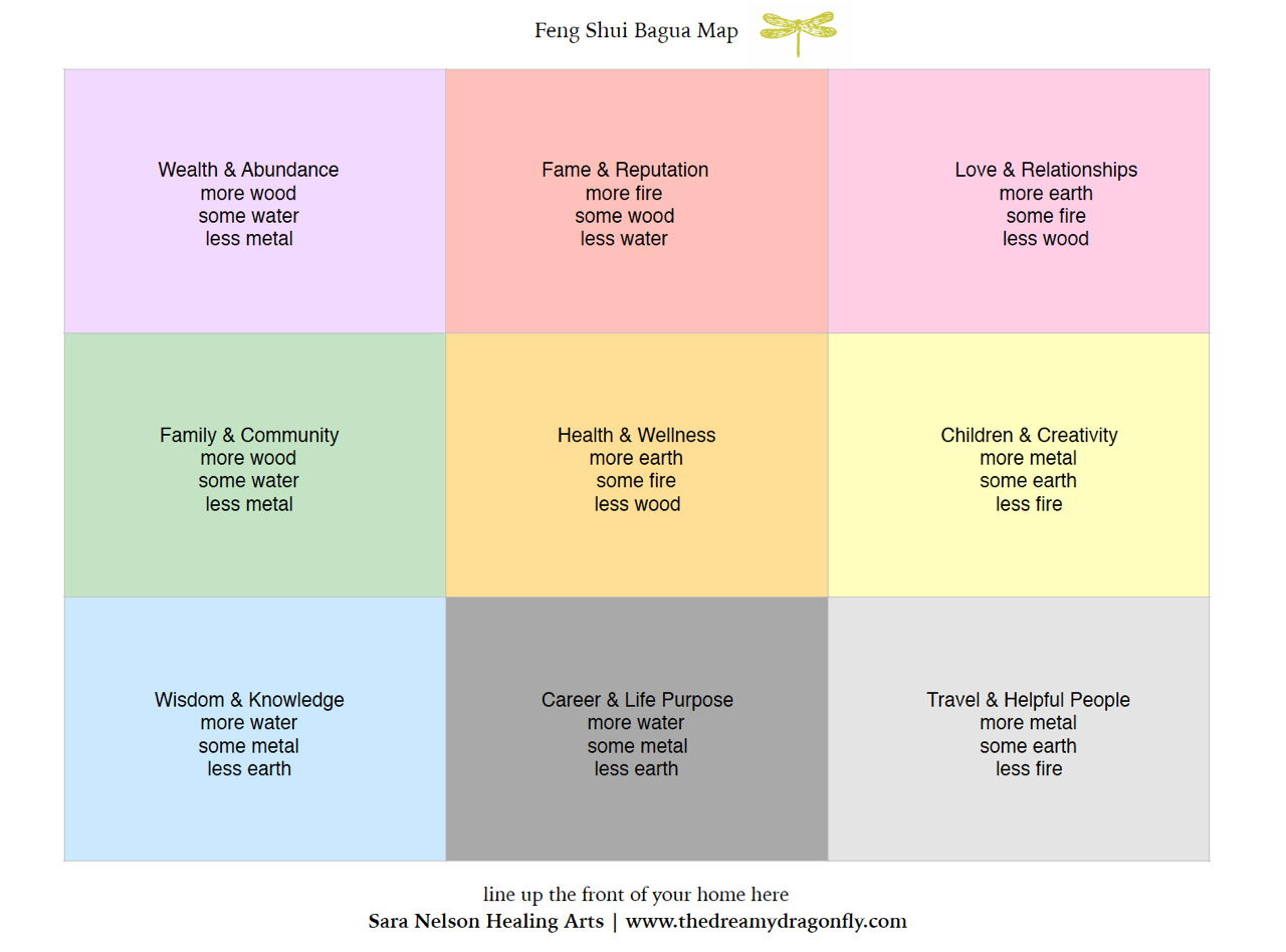 - Using the GUAS—career and life purpose, helpful people and travel, love and relationships, health and wellness, abundance and wealth, children and creativity, fame and reputation, family and community, and wisdom and knowledge—to help arrange your space